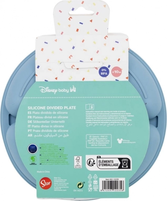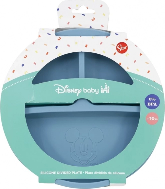 Dit siliconen bord is ontworpen met het populaire Mickey Mouse-motief waar kinderen dol op zijn. Met drie gescheiden vakjes is het ideaal om verschillende voedingsmiddelen apart te houden, wat een gezonde voeding vergemakkelijkt en het mengen van smaken voorkomt.
