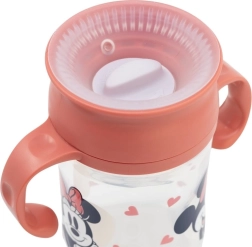 De oefenbeker heeft een praktisch design waarmee kinderen kunnen drinken door simpelweg met de lippen te drukken, ongeacht de stand van de beker. Dankzij de ergonomische handgreep is hij ook voor kleine handjes makkelijk vast te houden. Het speelse design met Minnie Mouse voegt plezier toe aan het dagelijks drinken en biedt een BPA-veilige ervaring voor je kind.