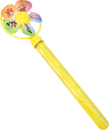 Bubbelpret voor jong en oud! Deze bellenblaas met windmolentje biedt eenvoudig blazen en een gaaf effect van het molentje. Dankzij de inhoud van 76 ml en de lengte van 34 cm maak je prachtige, grote bellen die elk kind blij maken. De praktische Tsjechische verpakking en drie kleurvarianten zorgen voor veel buitenspeelplezier en wedstrijden om de grootste bel.
