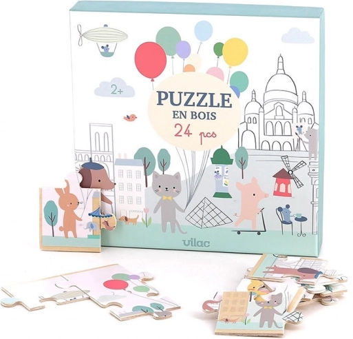 Begeef je in de schilderachtige straten van Parijs en laat kinderen de wereld van de verbeelding ontdekken met de panoramische houten puzzel van Vilac. De illustraties van Sarah Betz brengen schattige dieren en details die kinderen meteen aanspreken. Elk stukje is gemaakt van hoogwaardig hout, heeft gladde randen en is ontworpen voor kleine kinderhanden.