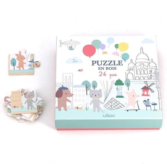 Ontdek de charme van Parijs met de kwalitatieve houten puzzel van Vilac, geïllustreerd door Sarah Betz. Deze panoramische houten puzzel met 24 stukjes stimuleert de fijne motoriek, het observatievermogen en de concentratie van kinderen vanaf 2 jaar. Dankzij het duurzame materiaal en inspiratie uit de Montessori-aanpak is hij ideaal voor samen leren en plezier maken.