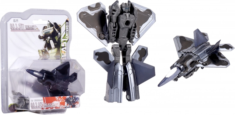 Leuke metalen autorobot van 11 cm lang, die kleine fans van militaire technologie zal verrassen. Beschikbaar in 4 varianten – lichte straaljager, donkere straaljager, tank en militair voertuig. De duurzame metalen uitvoering zorgt voor een lange levensduur en uitstekend speelplezier.