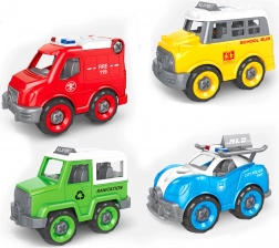 Leuke en leerzame schroefbare auto voor kinderen, die de fijne motoriek helpt ontwikkelen. Verkrijgbaar in 4 verschillende varianten – brandweer, politie, bus en schoonmaak.