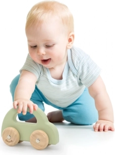 Dit minimalistische houten autootje in een zachte groene kleur is een geweldige keuze als eerste speelgoed om beweging en coördinatie te stimuleren. Dankzij de ergonomische vorm kunnen kleine handjes het gemakkelijk vastpakken en over de vloer duwen, terwijl de stille wielen voor een soepele en stille rit zorgen.