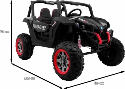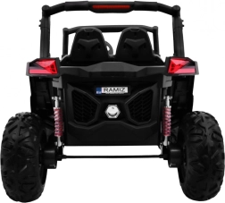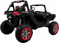Beleef offroad-plezier met de elektrische kinderbuggy SuperStar 4x4 in stijlvol zwart. Dankzij de schakelbare aandrijving 2×4 / 4×4, vier 4×45 W-motoren en grote EVA-wielen 35 × 15 cm kan hij oneffenheden en tuin-terrein aan. Verstelbare schroefvering (2× voor, 2× achter) en een hoge bodemvrijheid van 23 cm zorgen voor comfortabel rijden.