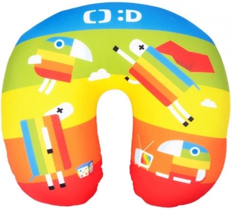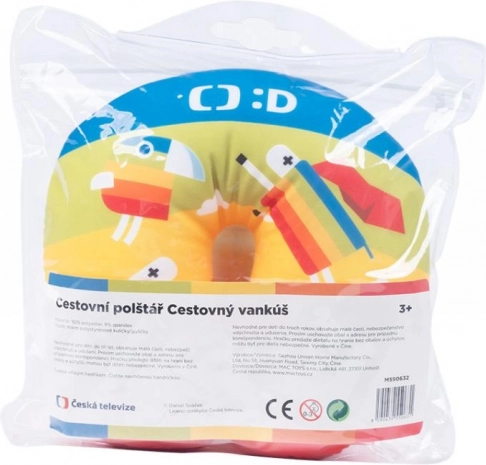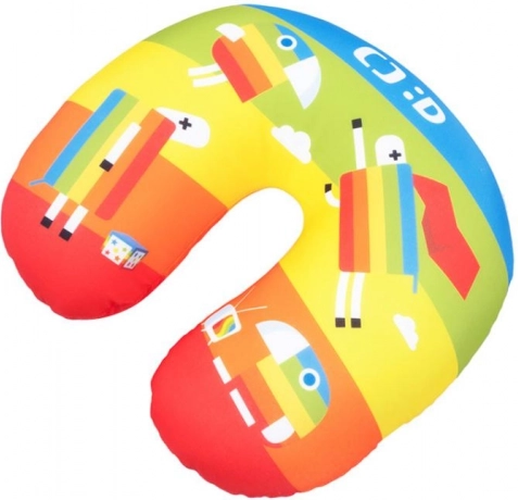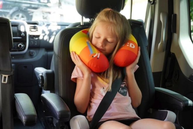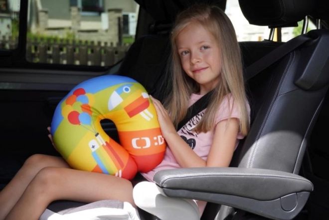 Kleurig kinderreiskussentje in U‑vorm met CT Déčko-licentie biedt ergonomische nekondersteuning en comfort onderweg. Gemaakt van zacht, pluche materiaal, ideaal voor auto, bus en vliegtuig.