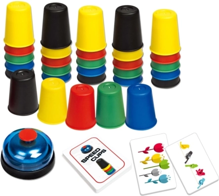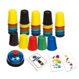 Snelle Bekertjes is een dynamisch spel dat gegarandeerd voor lachen en plezier zorgt in elk huishouden. In de verpakking vind je 30 bekertjes, een bel, 24 kaartjes met afbeeldingen en instructies, zodat je meteen kunt beginnen met spelen.