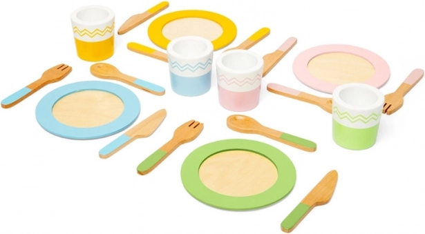 Ontdek de vrolijke kinderwereld van koken met deze bijzondere houten serviesset. Gemaakt van hoogwaardig hout, bevat deze set al het benodigde servies en bestek dat is afgestemd op de kleine handjes van je kinderen.