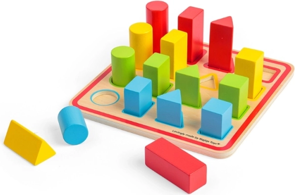 Kinderen koppelen de gekleurde vormen aan de juiste openingen en oefenen zo op natuurlijke wijze hun logisch inzicht, concentratie en precisie van bewegingen.