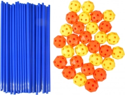 Deze veelzijdige constructieset met lange blauwe staven en oranje-gele koppelingen laat kinderen duurzame driedimensionale bouwwerken maken. Stevige, niet-buigzame buisjes en stabiele veelhoekige koppelingen behouden hun vorm, ook bij grotere constructies. Inclusief ideeënschrift voor een snelle start.