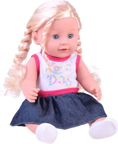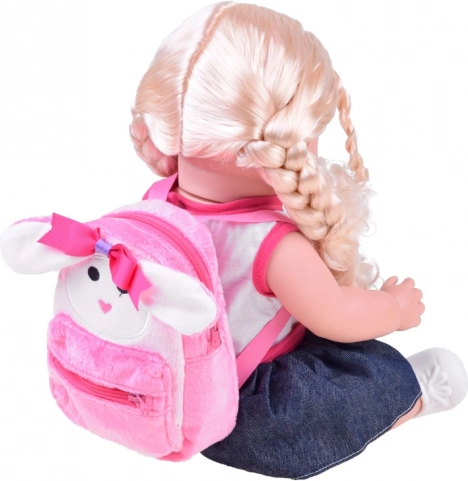 Maak kennis met de pop die het hart van elk meisje verovert: ze heeft lange blonde vlechten, blauwe slaapogen, bewegende armen en benen en wordt geleverd met een roze bril en een pluchen rugzakje m... Meer tonen