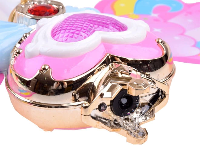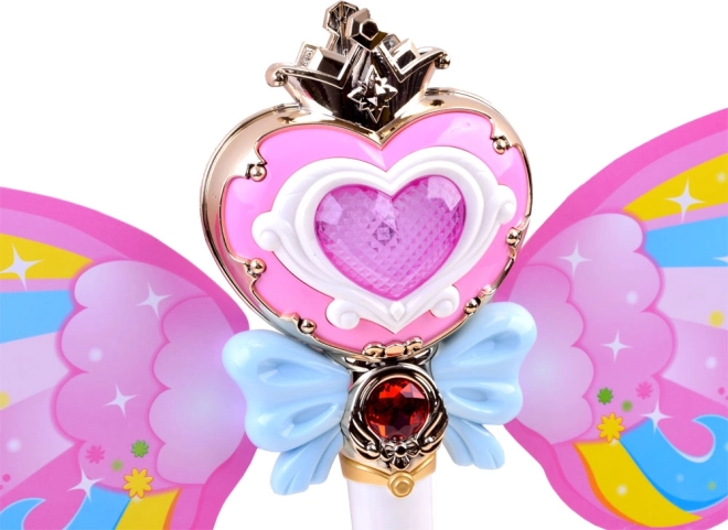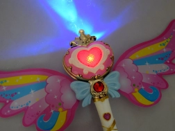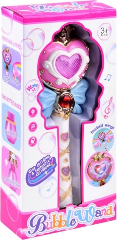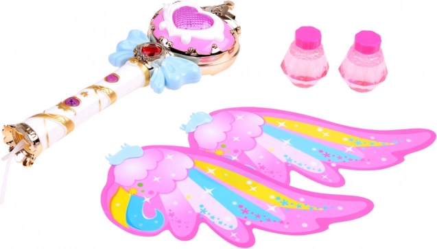 Deze betoverende staf met regenboogvleugels biedt de mogelijkheid om kleurrijke zeepbellen te maken, die elk kind zal verrukken. Bij het indrukken van de knop klinkt vrolijke muziek en straalt de staf levendige lichten uit.
