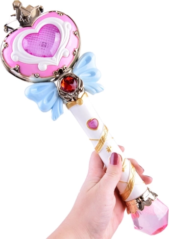 De knop op de staf start niet alleen gekleurde bellen, maar ook levendige lichten die een magische sfeer creëren.