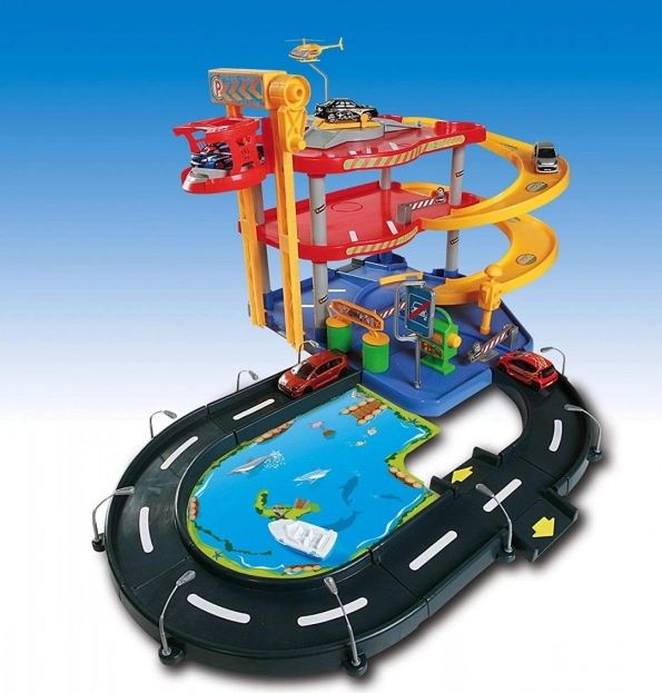 Geniet van uren speelplezier met de Bburago parkeergarage. Deze gedetailleerde drie verdiepingen tellende parkeerset heeft een autolift en een functionerende wasstraat, samen met twee kwalitatieve autootjes - Audi en Porsche - voor een realistische speelervaring.