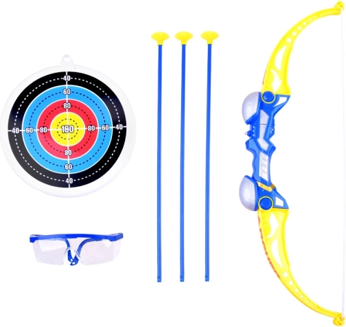 De pijlen zijn voorzien van rubberen zuignappen, zodat het spel volgens de regels zonder risico op letsel kan worden gespeeld. De boog is uitgerust met een kleine LED die knipperend gekleurd licht uitzendt, wat de aantrekkingskracht van het spel verhoogt, vooral in een donkere kamer of 's nachts. <\/span>