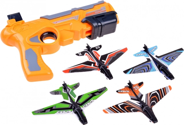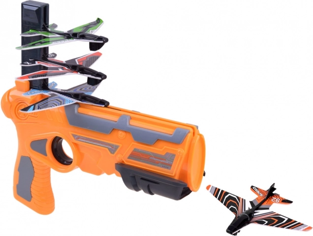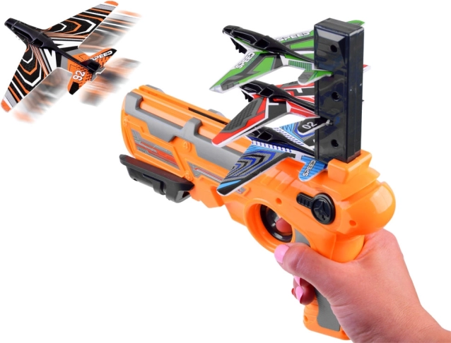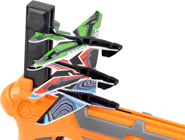 Grote vliegtuig lancering pistool is onze nieuwste aanbieding. Het lanceerapparaat heeft een magazijn dat drie vliegtuigen kan laden. Om bij elke keer een vliegtuig te kunnen afschieten, moet het magazijn van het pistool opnieuw worden geladen. Na elke lancering wordt het magazijn verlaagd, zodat er tot drie vliegtuigen in één ronde kunnen worden afgeschoten. Het wapen is volledig gemaakt van lichtgewicht plastic en de vliegtuigen zijn gemaakt van EPP schuim. Dankzij hun lichtheid kunnen de vliegtuigen enkele meters vliegen. Elke fan van schietwedstrijden die zo'n lanceerapparaat heeft, kan de langste vluchten oefenen en vervolgens wedstrijden met vrienden organiseren. <\/span><\/p>
