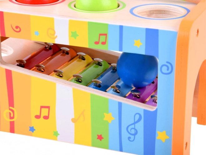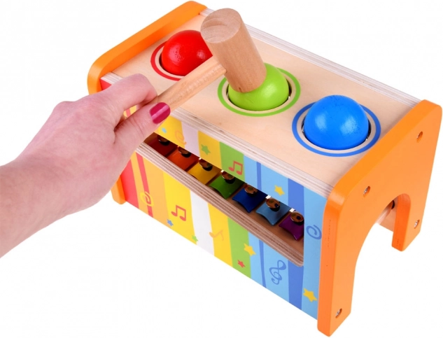 Kinderen kunnen met het hamertje gekleurde balletjes door de openingen in het frame slaan, die bij het neerkomen op de xylofoon verschillende klanken produceren. Deze activiteit bevordert zowel de motoriek als het muzikale gehoor.