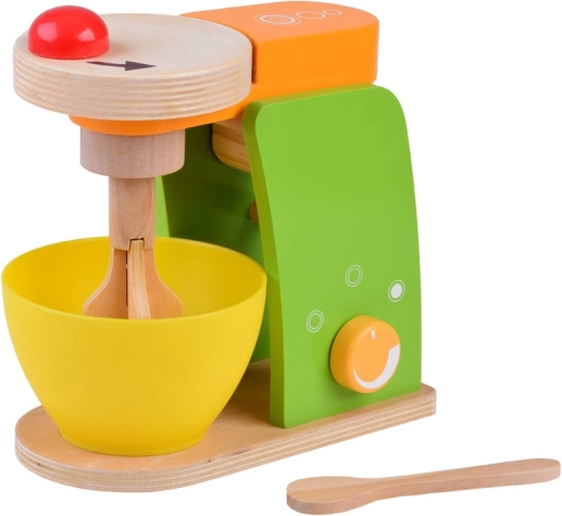 Deze houten kindermixer is een perfecte aanvulling op elke kleine speelkeuken en stimuleert creatief en educatief spel. Dankzij de hoge afwerkingskwaliteit zijn de houten onderdelen stevig en veilig, terwijl de kunststof kom licht en makkelijk te hanteren is. De mixer ondersteunt de ontwikkeling van creativiteit en motorische vaardigheden van het kind: