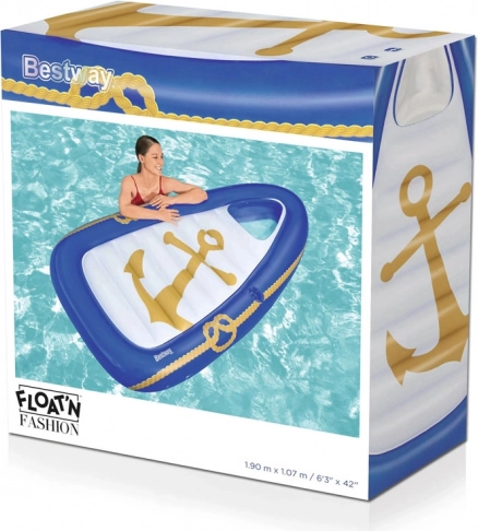 Opblaasbaar luchtbed boot Bestway Nautical Paradise is de ideale keuze voor hete zomerdagen. Het bootvormige luchtbed met een ankerprint is perfect voor elk wateroppervlak en trekt de aandacht van voorbijgangers. Met afmetingen van 190 x 107 cm is het groot genoeg voor één persoon met een maximaal gewicht van 90 kg.