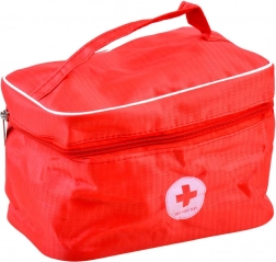Alle accessoires berg je op in de rode tas met kruis. Ideaal om mee te nemen en overal snel hulp te bieden.