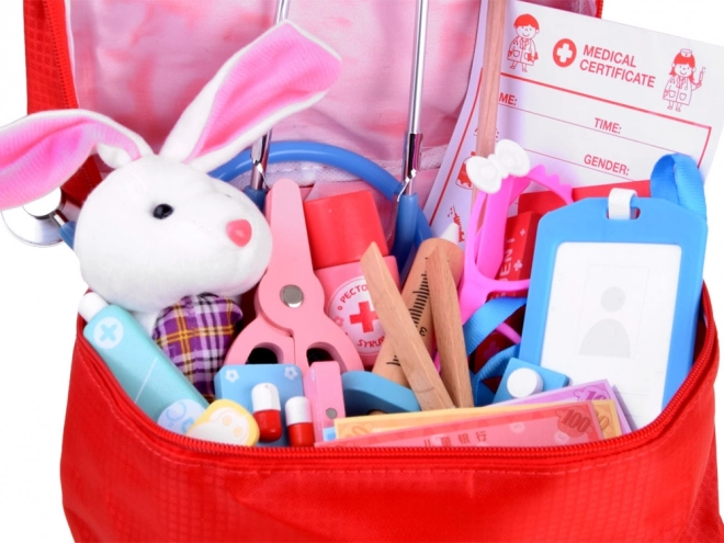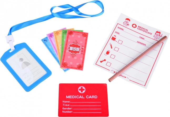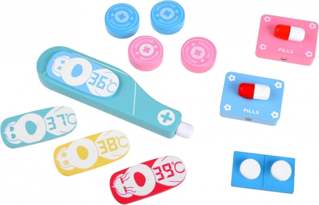 Spuit, schaar, pincet en thermometer zijn gemaakt van duurzaam hout met een aangename afwerking. Ze ondersteunen de fijne motoriek en veilig spel.