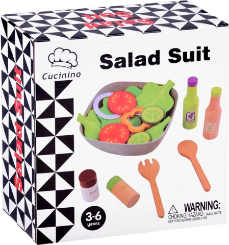 Stimuleer de fantasie en gezonde gewoonten van kinderen met deze saladebereidingsset. Bevat veilige houten en vilten onderdelen, een kom en keukengerei voor realistisch speelplezier. Kinderen oefenen hun fijne motoriek, leren groente herkennen en genieten van creatief koken zonder rommel. Veilige materialen, levendige kleuren en onderdelen om te mengen en te serveren maken het een ideale aanvulling op elke speelkeuken.