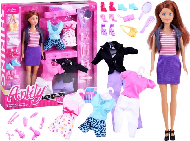 Ontdek de wereld van mode met de ANLILY-pop en de uitgebreide set kleding en accessoires. Kinderen kunnen gemakkelijk jurken, T-shirts, broeken, rokken en schoenen combineren, aanvullen met handtassen en het kapsel stylen met styling speelgoed. Dit alles stimuleert fantasie, fijne motoriek en zelfstandig spel.