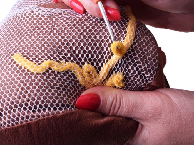Dankzij het gaaszakje en de haak rijgen kinderen het garen veilig door en maken ze een harig oppervlak op het kussentje zonder te naaien.