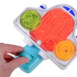 Dit slimme speelgoed maakt het mogelijk om concentratie, manuele vaardigheden en geduld te oefenen. Het labyrint is gemaakt van plastic in aantrekkelijke kleuren en bevat verschillende secties in groen, oranje en geel. Het doel is om de metalen bal van het ene deel van het labyrint naar het andere en weer terug te brengen.