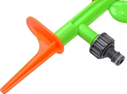 Deze sproeier is gemaakt van hoogwaardig plastic in levendige kleuren, wat duurzaamheid en een lange levensduur garandeert. Dankzij de universele aansluiting kun je snel en eenvoudig elke tuinslang aansluiten. Het in de grond plaatsen is eenvoudig dankzij de pin aan het eind van de sproeier.