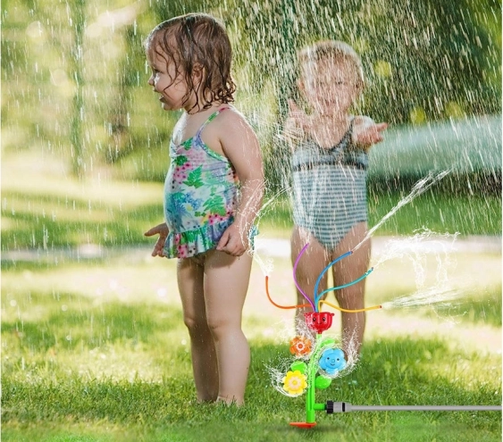 Geniet van eindeloos plezier met deze kleurrijke kindersproeier die water in alle richtingen verspreidt. Tijdens het spuiten draaien de bloemen vrolijk en de kleuren mengen zich prachtig, wat nog meer speelsheid en vreugde stimuleert.