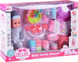 De set bevat een flesje, speen, luier, potje en veel andere toevoegingen voor een complete speelervaring met de pop.