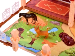Opmerkelijke details zoals stallen, omheiningen en dieren maken deel uit van de set, wat kinderspel realistischer en leuker maakt.