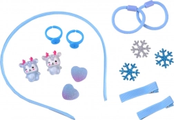 De set bevat een brede selectie stoffen, waaronder tule, linten, kralen, versieringen en andere decoratieve elementen die creatief knutselen stimuleren.