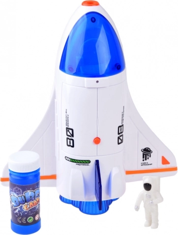 De bellenblaasmachine in de vorm van een raket is de droom van elke kleine avonturier. Zodra je een fles met oplossing in het onderste deel van de raket plaatst en op de knop op de rug drukt, begint de magie van gekleurde bellen. Kinderen kunnen zien hoe de raket beweegt en vrolijke bellen uit het voorste deel worden gelaten.
