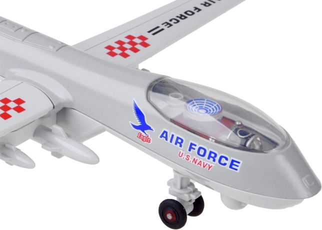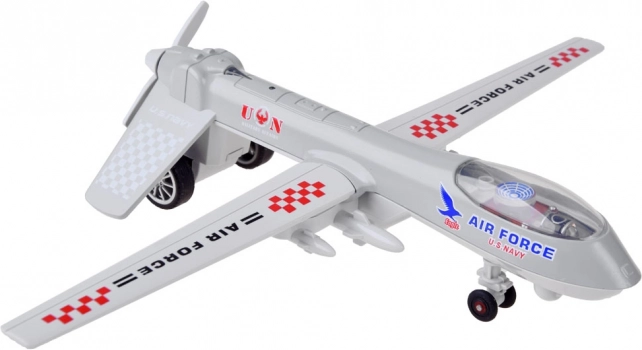 Het metalen dronemodel biedt niet alleen nauwkeurige details, maar ook inklapbare vleugels en een draaiende propeller, waardoor het ideaal vermaak is voor zowel kinderen als volwassenen. De drone is uitgerust met een pull-back functie, waarmee hij na naar achteren trekken uit zichzelf naar voren rijdt. Deze eigenschap, samen met de geluid- en lichteffecten, geeft het gevoel van echte luchtactie.