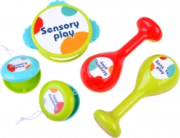 De verschillende percussie-instrumenten ontwikkelen het gehoor, het ritme en de fijne motoriek. De vrolijke kleuren moedigen kinderen aan om actief klanken te ontdekken.