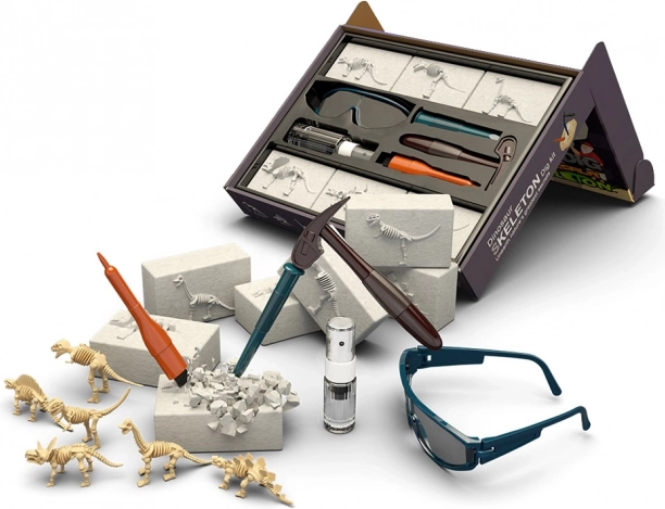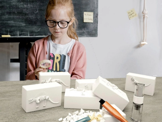 Kruip in de huid van een echte paleontoloog en ontdek de botten van dinosaurussen die duizenden jaren geleden op aarde leefden. Elke gipssteen bevat het skelet van legendarische soorten – van de geliefde Tyrannosaurus tot de majestueuze Brachiosaurus. Tijdens het opgraven oefenen kinderen geduld en nauwkeurigheid, en bij het in elkaar zetten van het skelet logica en verbeeldingskracht.