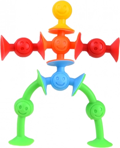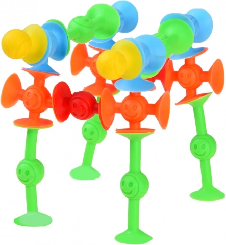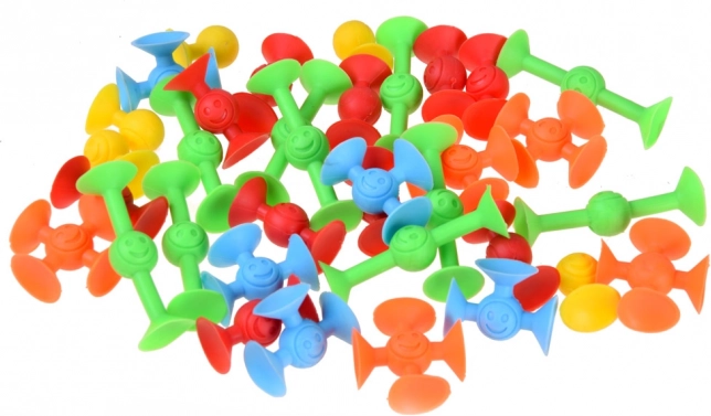 De set siliconen zuignappen is ideaal voor kinderen én volwassenen. De flexibele onderdelen verbinden eenvoudig door zuigkracht – maak torens, figuren, bruggen, telefoonstandaards of raam- en tegeldecoraties. Dankzij de hechting op gladde oppervlakken (glas, raam, koelkast, tafelblad) vermaak je je in elke kamer en zelfs tijdens het badderen.