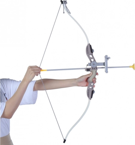 De lichte kunststof boog met comfortabele greep is ook voor jongere kinderen makkelijk te hanteren – perfect voor de eerste stappen in boogschieten.