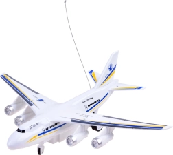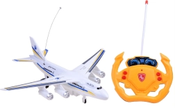 Leuk RC-vliegtuig voor kleine luchtvaartfans, bediend met een stuurvormige controller. Het speelgoed heeft lichteffecten (rood en blauw) en rijdt gemakkelijk over vlakke oppervlakken. Het kan vooruit en achteruit rijden en naar rechts en links sturen. Stevige kunststof uitvoering in wit met B718-details.