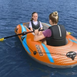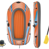 De verpakking bevat alle benodigde accessoires voor direct gebruik – een paar peddels, een voetpomp en een reparatiepatch. De boot is gemaakt van duurzaam PVC-materiaal dat is getest voor gebruik op het water.