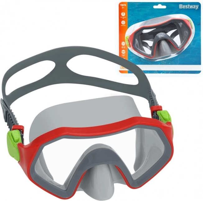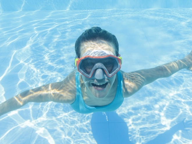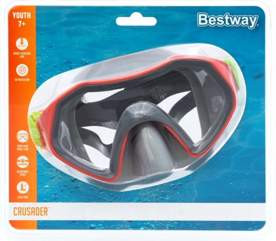 Licht en duurzaam kinder-snorkelmasker Bestway Crusader, ideaal voor kleine ontdekkers vanaf 7 jaar. Biedt een breed gezichtsveld, verstelbare gesplitste banden voor een comfortabele pasvorm, schokbestendig polycarbonaatglas en UV-bescherming voor veilig waterplezier zonder oogirritatie.