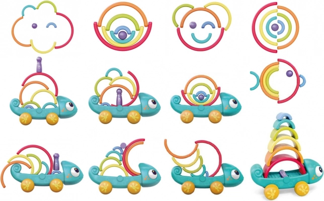 Deze kleurrijke kameleon biedt vele spelmogelijkheden, waardoor het de aandacht van het kind vasthoudt en zijn creativiteit ondersteunt. Spelen met de kameleon helpt het kind fijne motoriek, ruimtelijk inzicht, kleurherkenning en vergelijkingsvermogen te ontwikkelen.