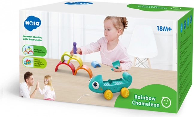 De kameleon ondersteunt spelen met trekken en stapelen, waarbij elk interactie-element de vaardigheden van kinderen versterkt.