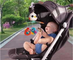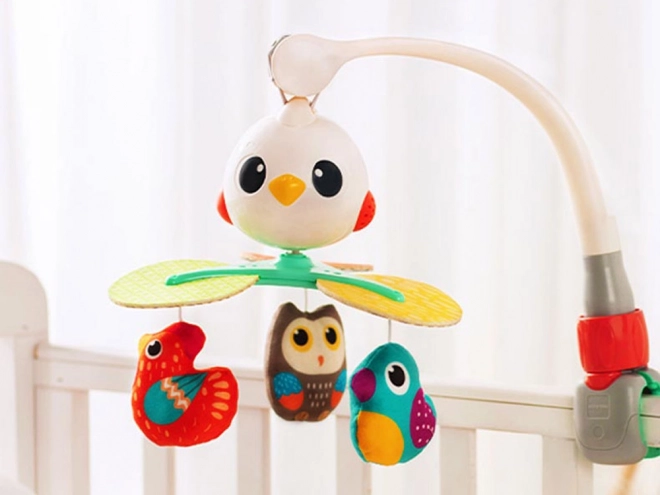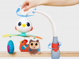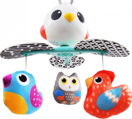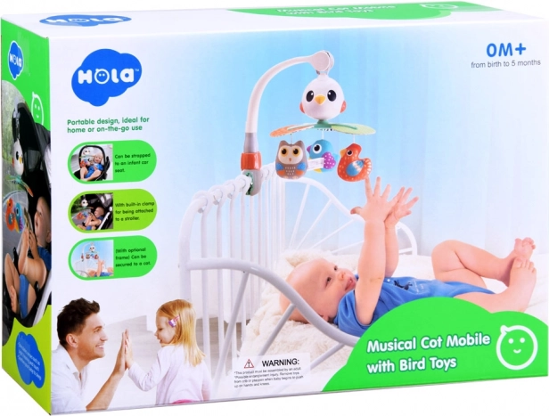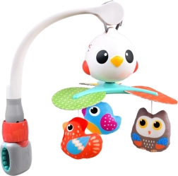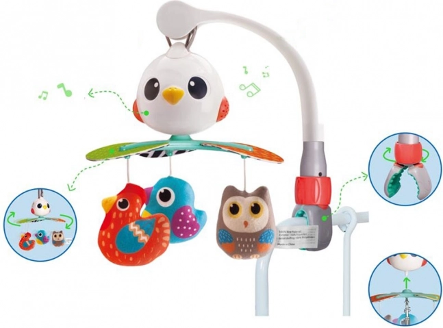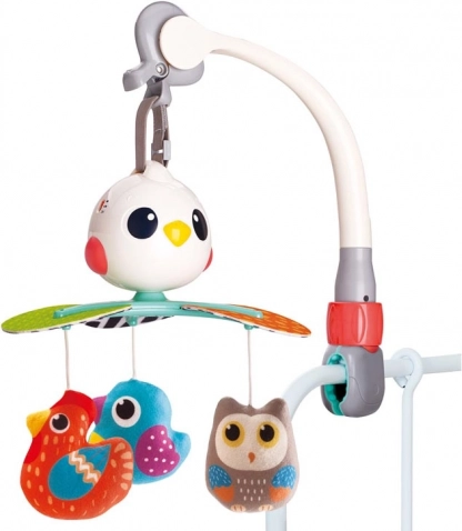 Deze prachtige baby-mobiel is ontworpen om de visuele, auditieve en tactiele zintuigen van je kind te stimuleren. Beproefde liedjes en aangename melodieën zorgen ervoor dat je baby tevreden en rustig is. De roterende constructie wordt aangevuld met hangende speeltjes in de vorm van kleurrijke vogeltjes die uitnodigen om vast te pakken en aan te raken.