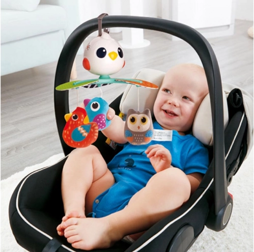 De hangende vogeltjes trekken de aandacht en stimuleren je kind om de handjes uit te steken en te spelen.