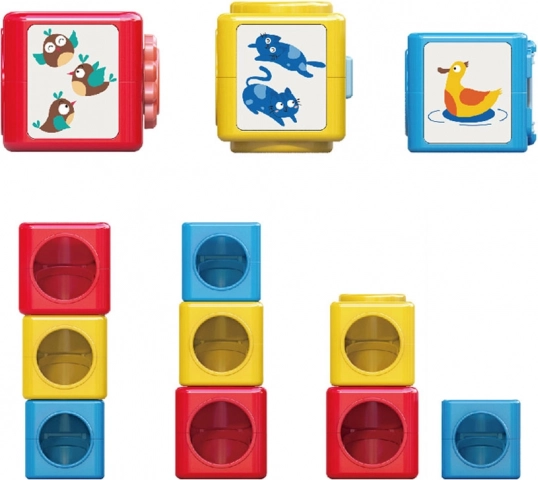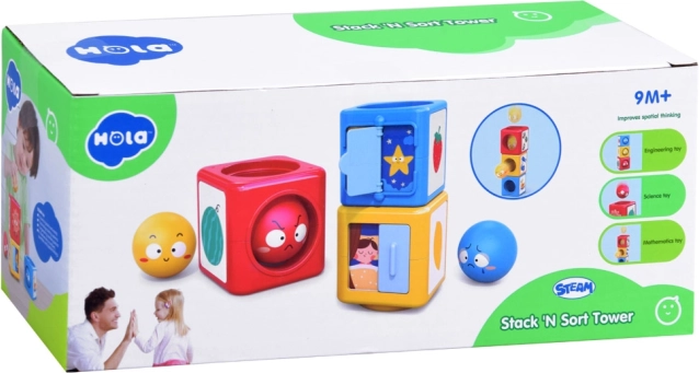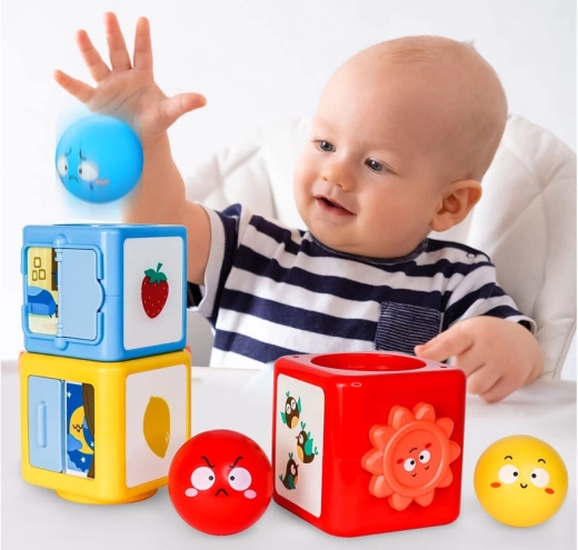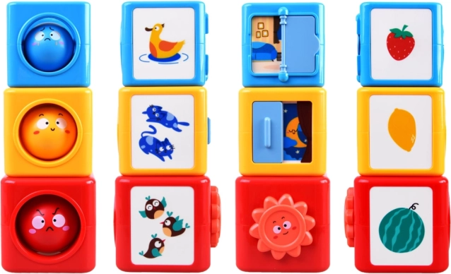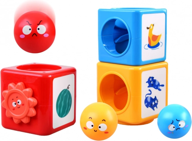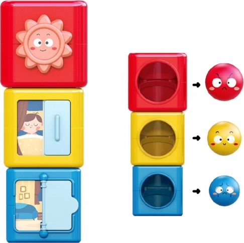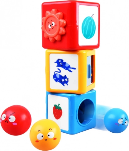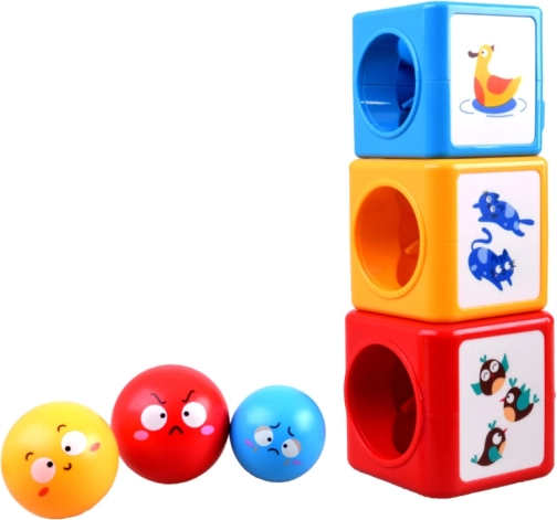 In deze kleurrijke bouwset vind je ballen en blokken die kunnen worden gestapeld en gesorteerd. Het speelgoed leert kinderen kleuren herkennen, emoties onderscheiden en de wereld om hen heen verkennen door middel van spel. Het speelgoed helpt bij het ontwikkelen van ruimtelijk denken, analytische vaardigheden en fijne motoriek.