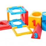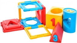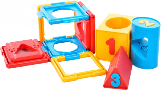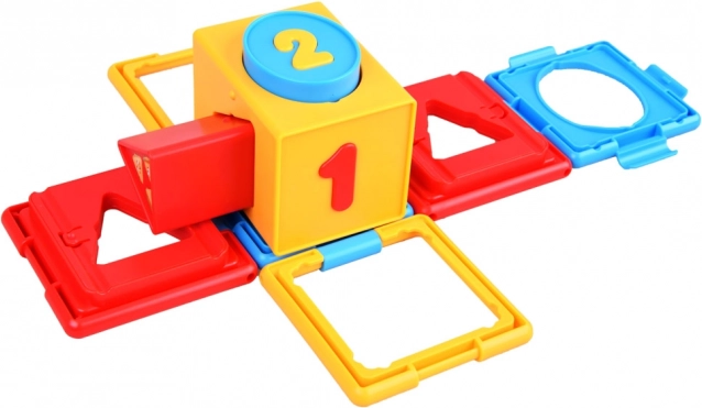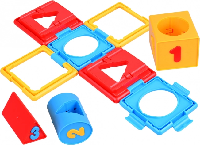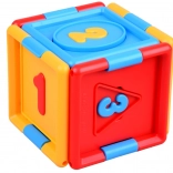 De kubus bevat verschillende vormen en cijfers, wat helpt bij het aanleren van basisvormen en cijfers.