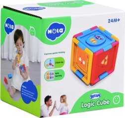 De educatieve kubus voor kinderen is ontworpen om de ontwikkelingsbehoeften van jonge kinderen te ondersteunen. Dit opvouwbare product helpt kinderen bij het leren van cijfers, vormen en kleuren. Tijdens het spelen plaatsen kinderen vormen in de corresponderende openingen, waardoor ze leren vormen en hun kleuren te herkennen en te koppelen. Bovendien bevat hij cijfers voor een eenvoudige kennismaking met de basis van het tellen.